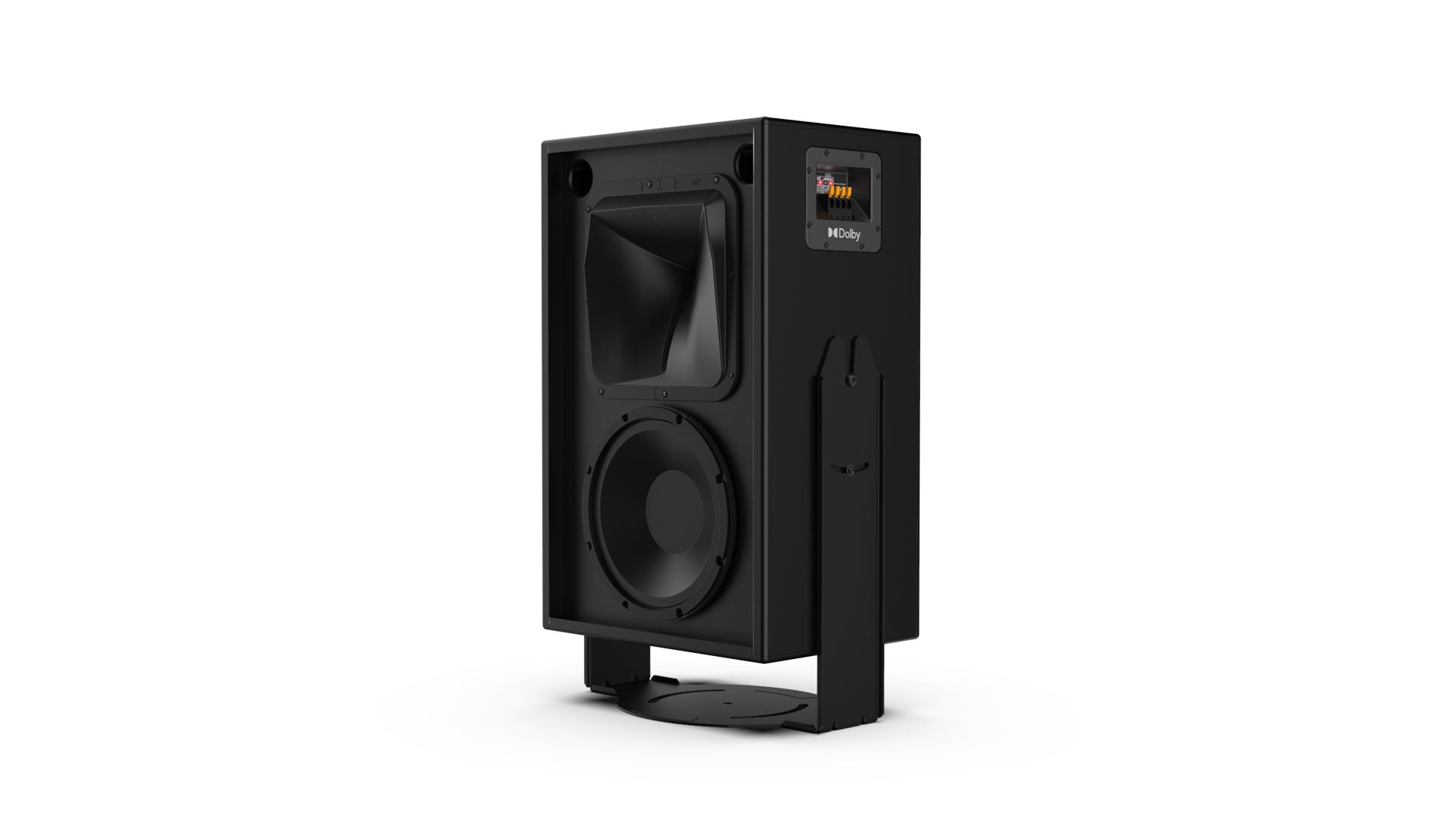 The CS126MH utilizes an advanced input plate that features a high-current, spring-loaded terminal block allowing quick, tool-free connection during installation, and when mounted atop the Dolby CS128LF low-frequency cabinet, completes the Dolby System 126. With the use of the optional PXO.126 full-range crossover, the System 126 is transformed from a bi-amplified system, to a passive, single-amp-channel system.